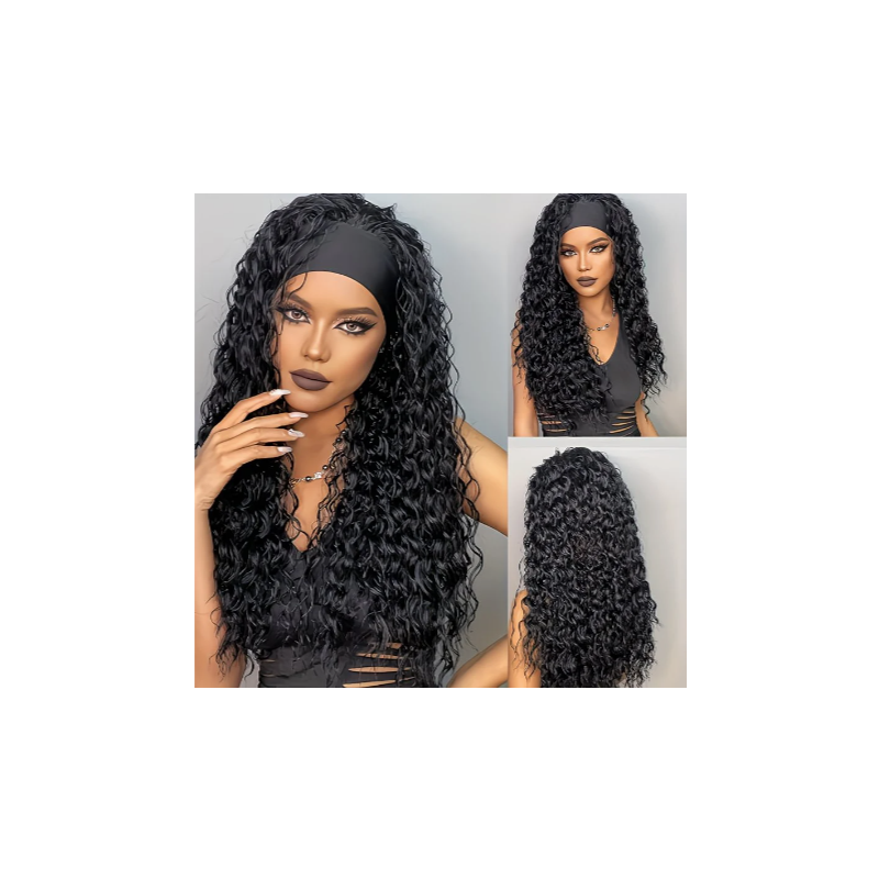 Perruque bandeau ondulée noire sans colle, densité, 26 pouces, 66,04 Cm / 1B ×10